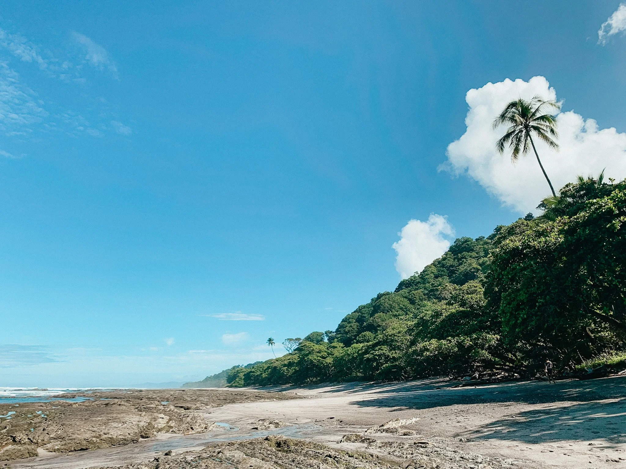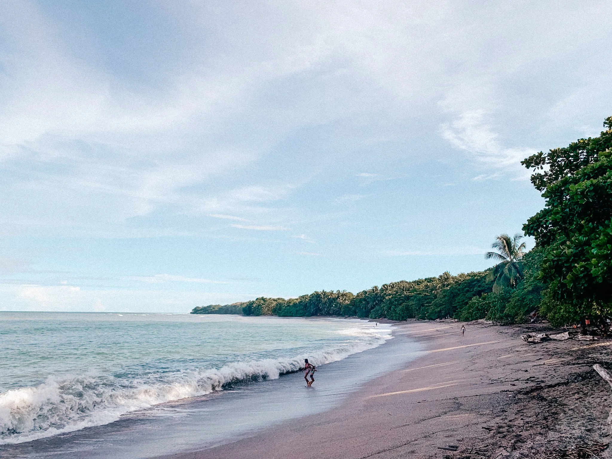 Oh, Playa Hermosa. It means beautiful beach, and obviously that’s not a coincidence haha. The top thing I think about when I think of Playa Hermosa besides beauty is…surfing (well, and Blake Mykowski because we saw him there:)! Playa Hermosa is the best surfing beach near Santa Teresa for beginners (see this post for more details!). The sand slopes gently out, and the waves aren’t too crazy. Most instructors head there for lessons, and it’s where we all popped up on our first board! This idyllic beach is about 15 minutes driving north of the village of Santa Teresa, so a little more off-the-beaten path than the main beaches in town and the perfect stop if you’re looking for a quieter day on the beach. There is a little surf shop/clothing boutique and restaurant just down the path from the beach, so you can grab snacks, drinks and use the facilities there. You can also rent surfboards and bodyboards there in case you’re like us and don’t have a car to bring them from town! Playa Hermosa is backed (of course:) by the gorgeous and wild jungle - tall palms and lush green line the sand. But don’t expect shade here because if you want it, you have to make it yourself haha. Playa Hermosa is the best place for learning to surf, but also just to come chill for the day. Because the surf is a bit calmer, it’s also better for swimming and playing in the water, especially for kids! Although, as with every beach, always use caution. Oh, and while sunset is a must no matter which beach you’re at on the west coast of Costa Rica, you definitely don’t want to miss it here, so plan to stay past 6pm!