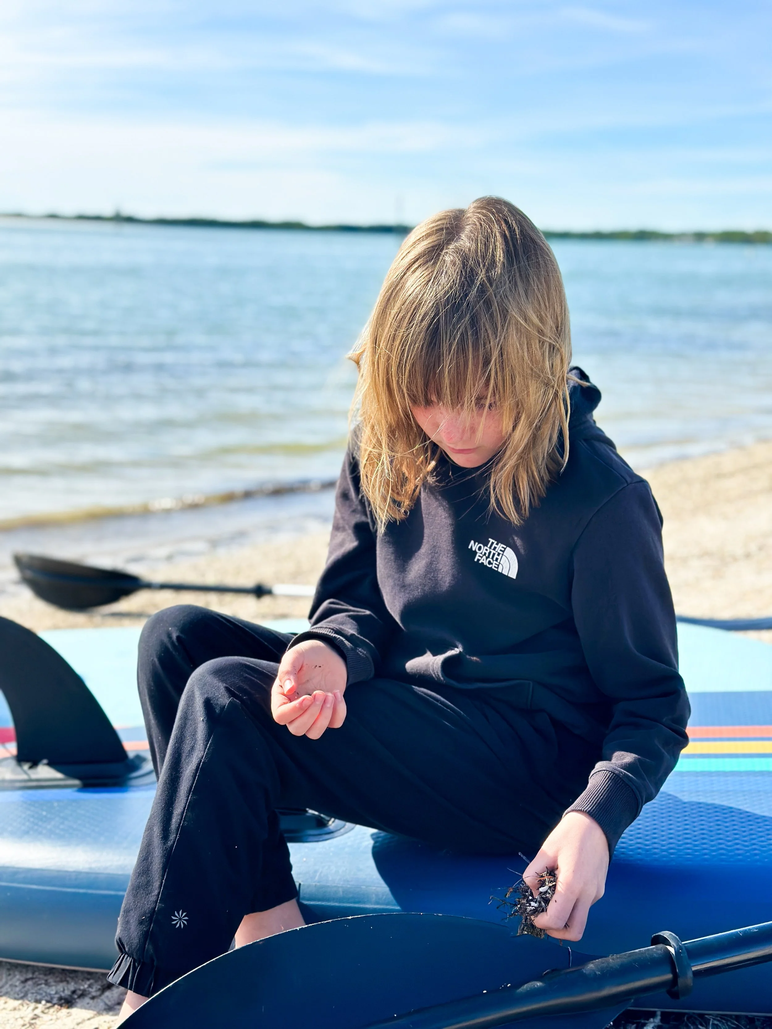 We had planned to hike one of the short trails, but ended up skipping it because the mosquitos were quite aggressive, and we had forgotten our bug spray (#momfail). So instead, we headed over to the sand spit to do a sunset walk (no mosquitos by the water!), and it ended up being the most breathtaking experience. Not far down the beach, we spotted small clams scattered on the beach, and the further we went the bigger and more dense they became.