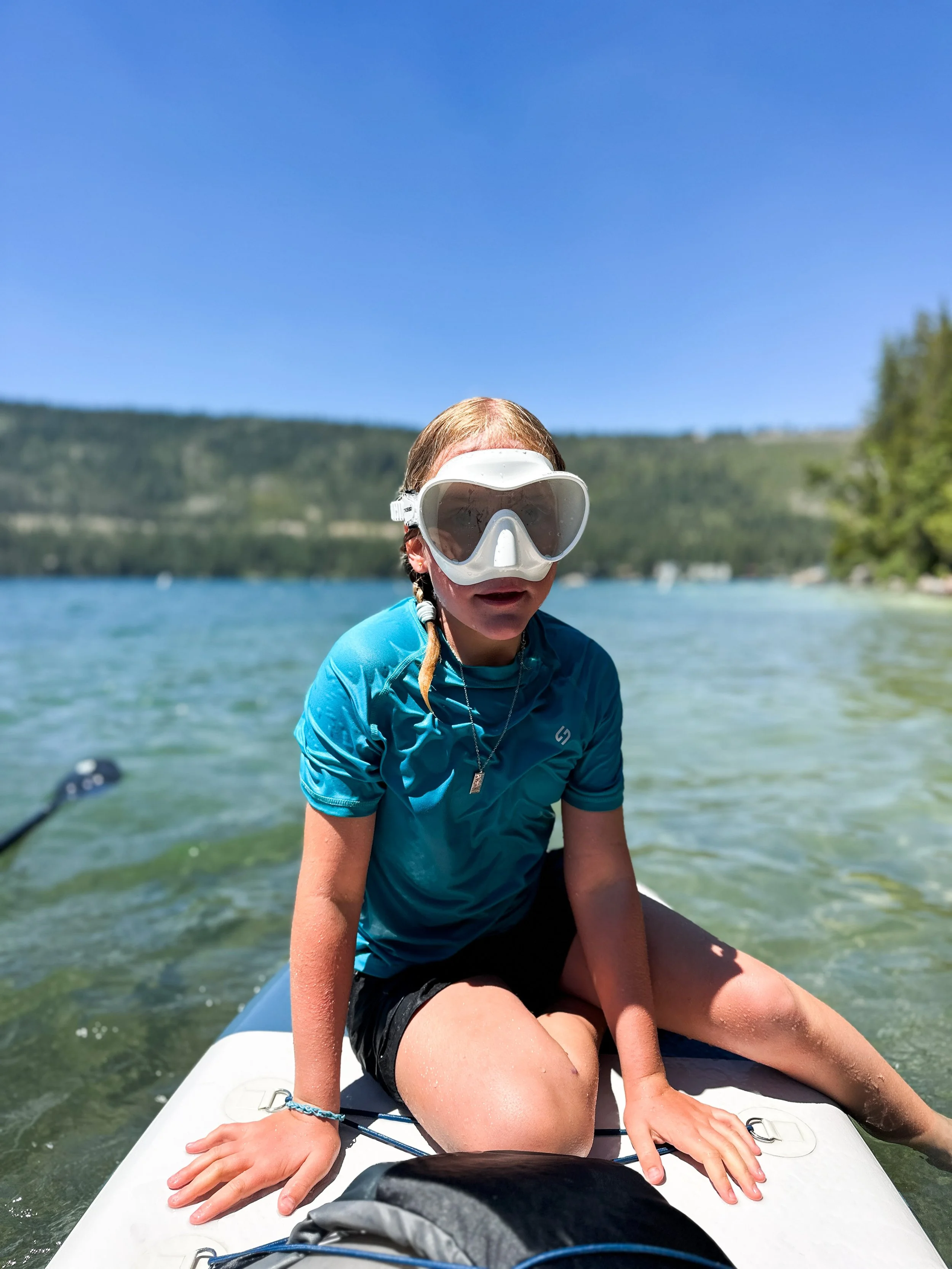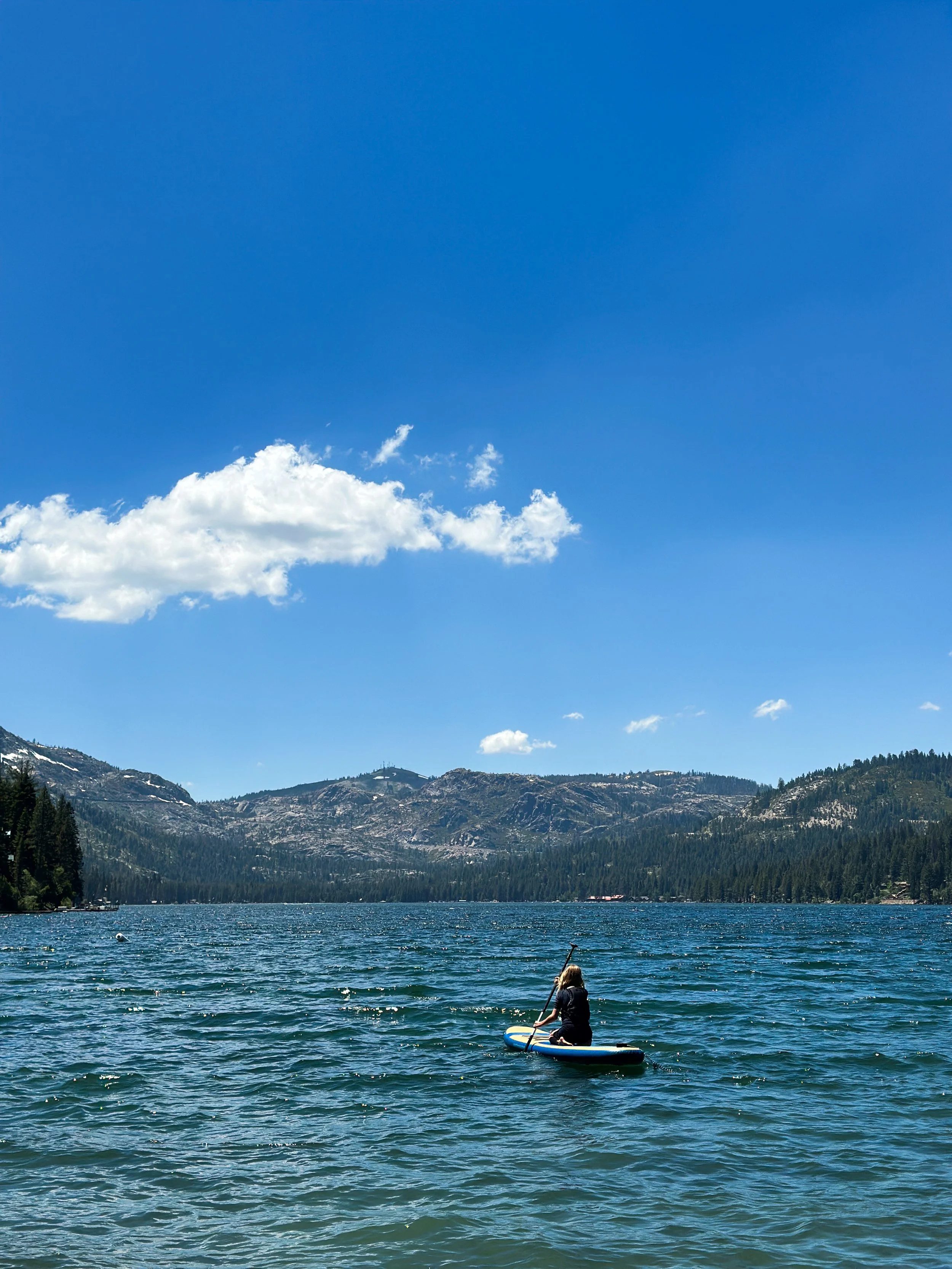 It was a beautiful day in Lake Tahoe as we unloaded our boards and paddles and life jackets. It’s always a bit of an ordeal to get everything aired up + ready to go, everyone sunscreened, snacks and water packed…so much work. But always worth it!